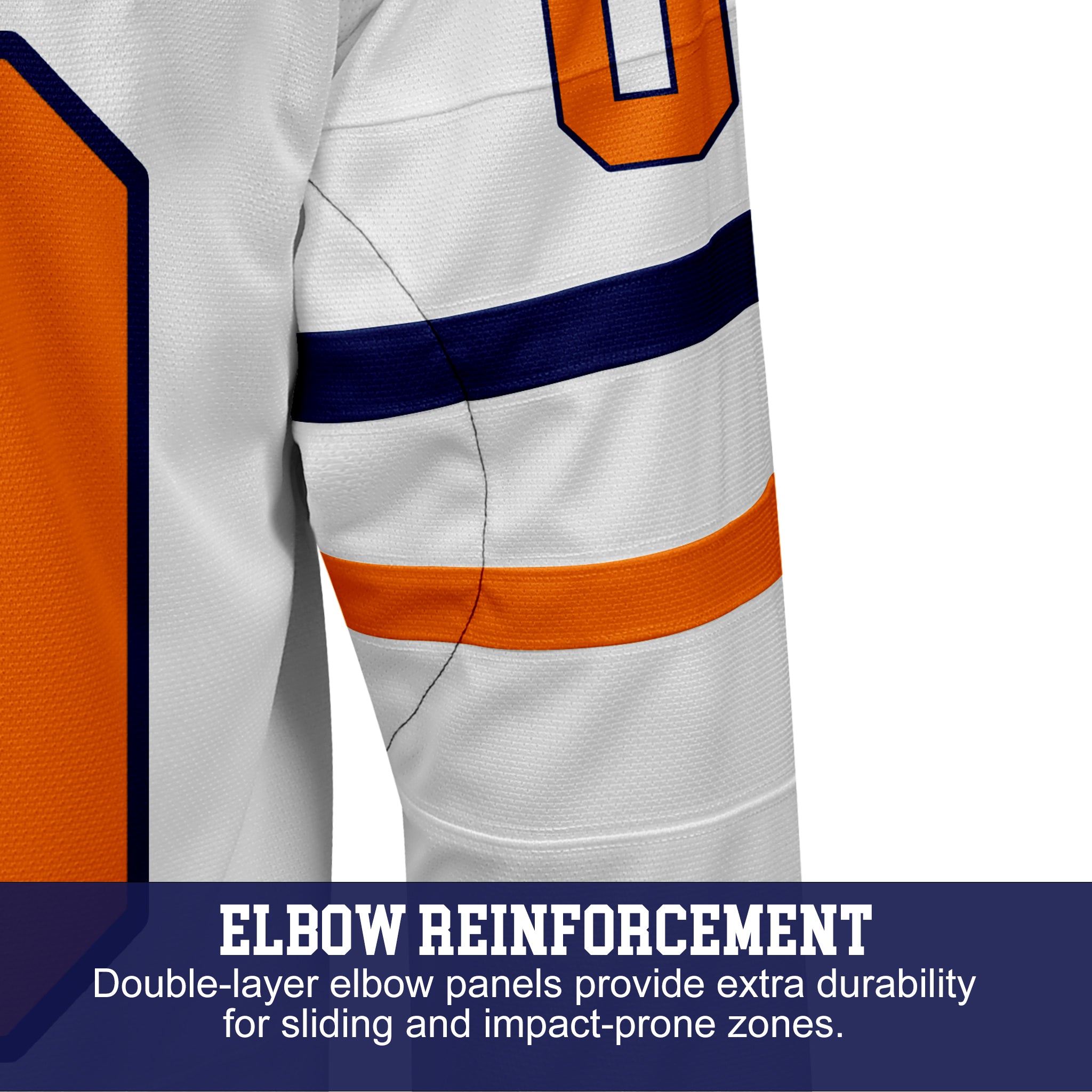 Pro-grade double-layer shoulders and reinforced elbows on the jersey for added protection and long-term wear during competitive play