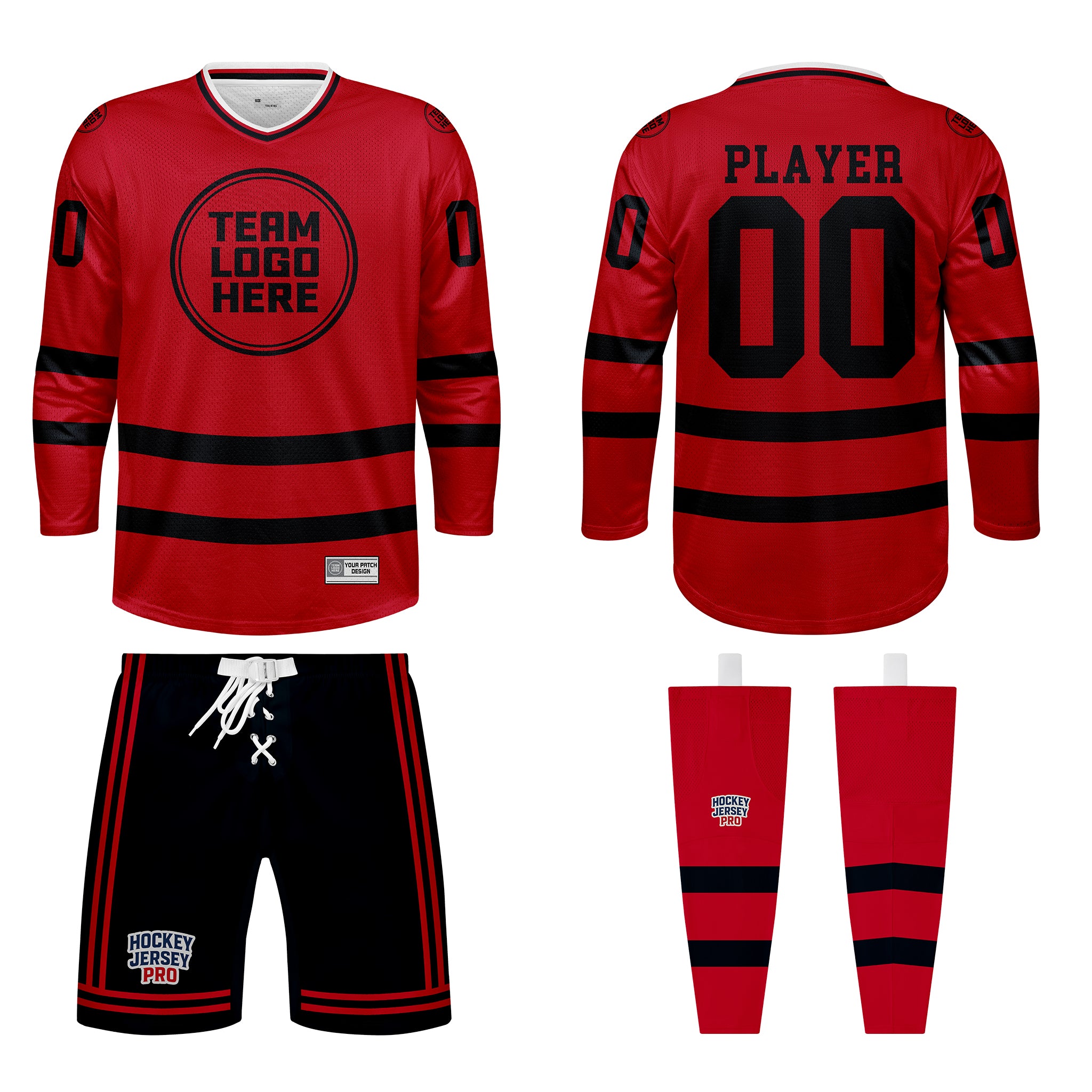 Customization is applied consistently across the jersey, pant shell, and socks to ensure a cohesive team presentation.